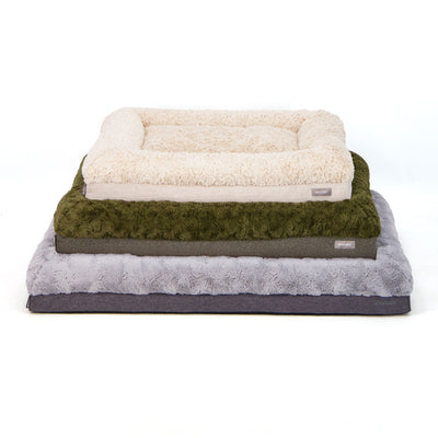 Orthopaedic foam combined with soft, plush faux fur for a comfortable doggie nap